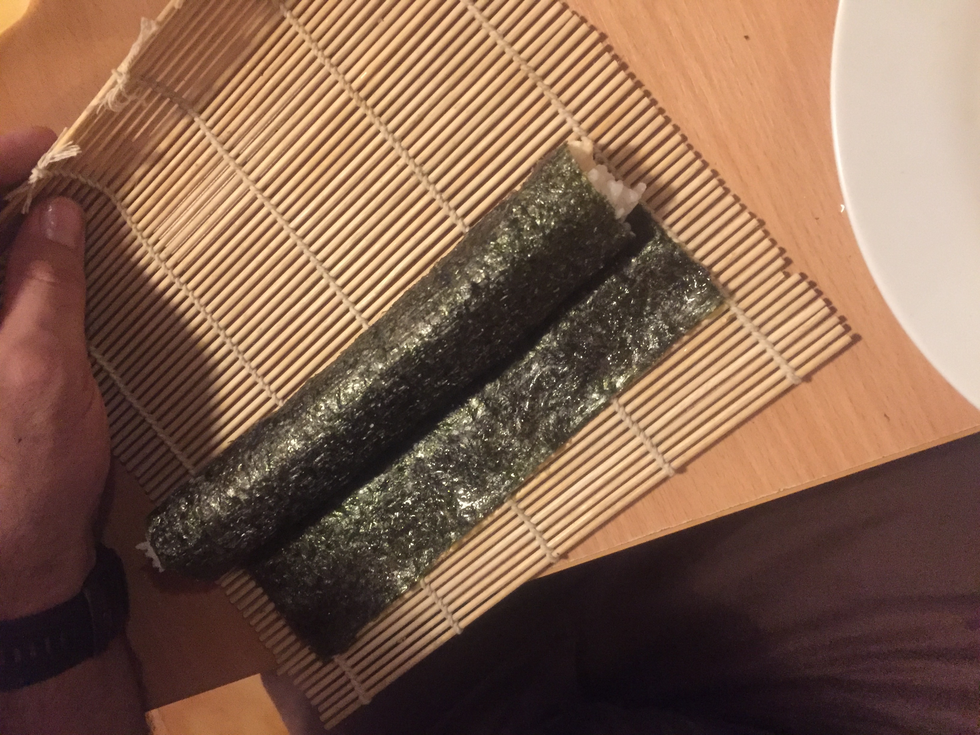 The first time I ever made sushi, the roll came out about the size of my forearm. It’s gotten better over time, but deeeeeefinitely something that I still need to practice.