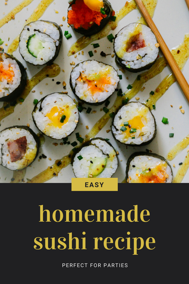 Hope you have fun making this simply scrumptious sushi! It is perfect for parties and feeding a crowd. Why not arrange a sushi making party? Could be cool to experiment with new flavours and add an interesting twist to a dinner party!